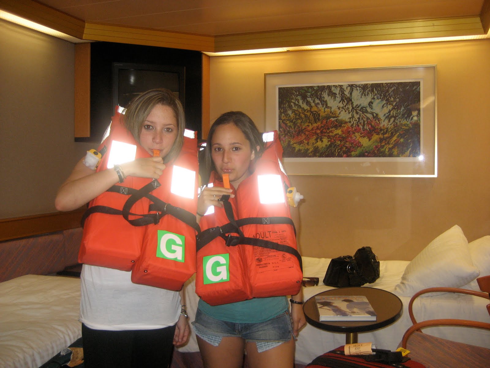 We spent the next few hours exploring the ship, and of course indulged in our first of many ice cream cones (it was hard to resist)! The next few hours were spent unpacking, exploring some more, possibly eating MORE ice cream, and partaking in the safety evacuation drill. My sister Ali and I always have too much fun with our lifejackets, although it is actually very difficult to walk down x amount of flights of stairs to get to the proper deck. You can see our tiny interior cabin in the picture as well. It was livable though; we made do. I can’t quite remember the rest of the night’s activities, so I will begin with a new day.